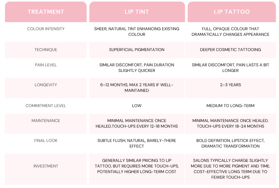 Lip Tint vs Lip Tattoo: Procedure Comparison