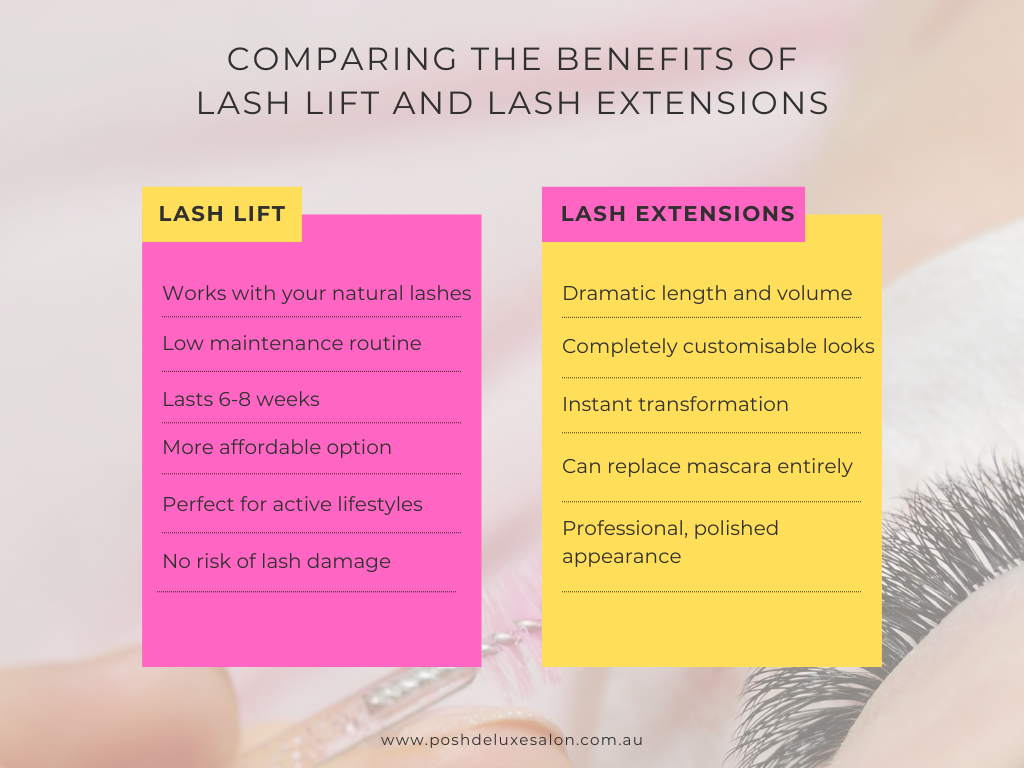 When it comes to enhancing your natural beauty, your lashes can completely transform your look. At Posh Deluxe Salon, we frequently meet clients who want their eyes to stand out but aren’t sure whether to opt for a lash lift or lash extensions. Both treatments yield gorgeous results, but they work in distinctly different ways. Understanding the difference between Lash Lift and Lash Extensions will help you make the right choice for your lash goals.