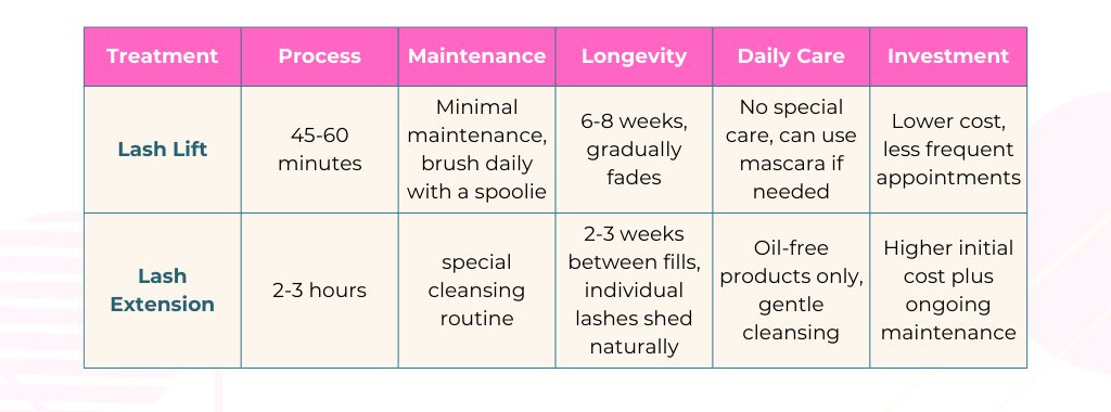 Choosing between a lash lift and lash extensions really depends on your lifestyle, budget, and the look you’re going for. Think about your daily routine, how much upkeep you’re comfortable with, and whether you prefer a subtle enhancement or a more dramatic effect.