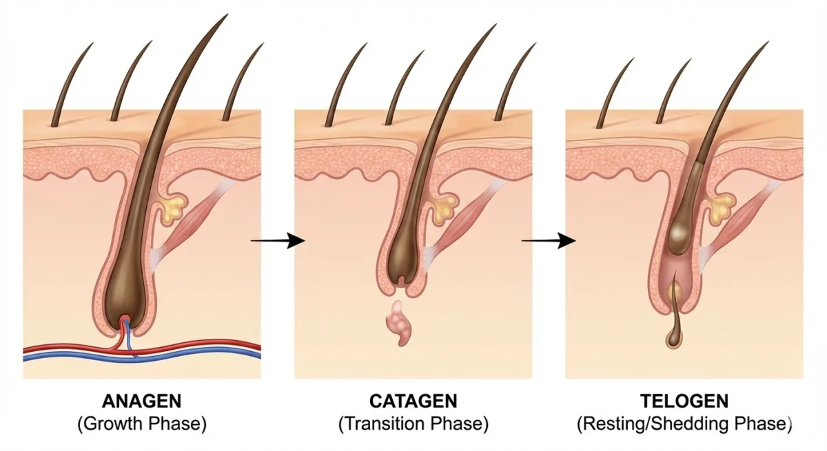 3. Telogen (Resting/Shedding Phase): The hair eventually falls out to make room for a new hair to grow in its place.